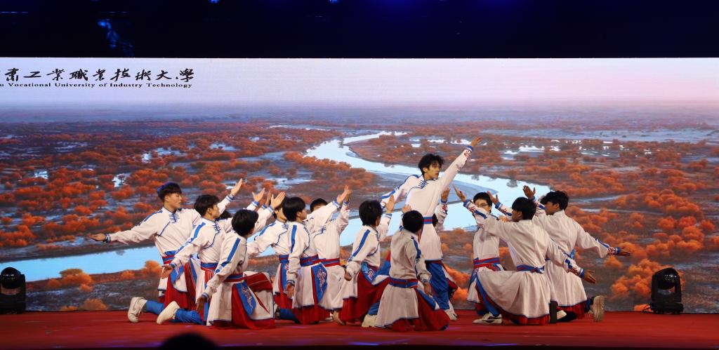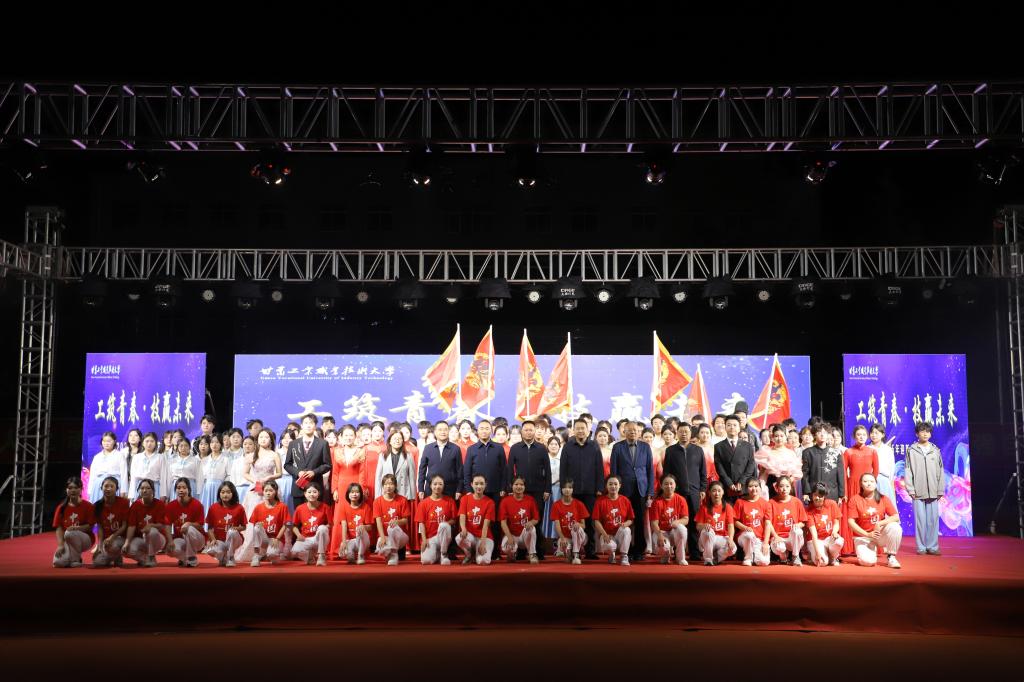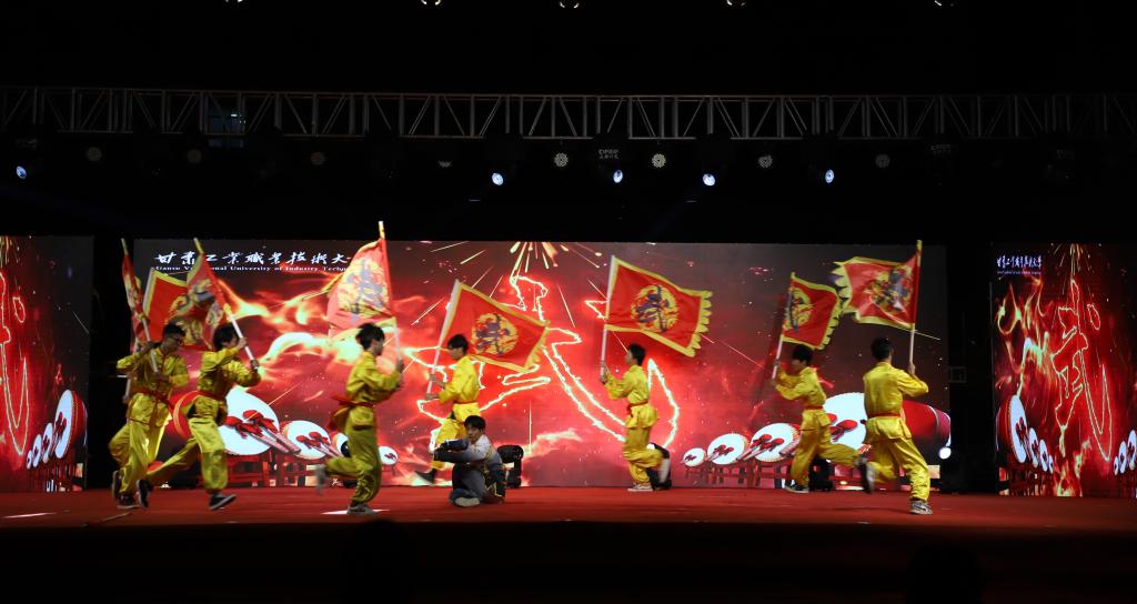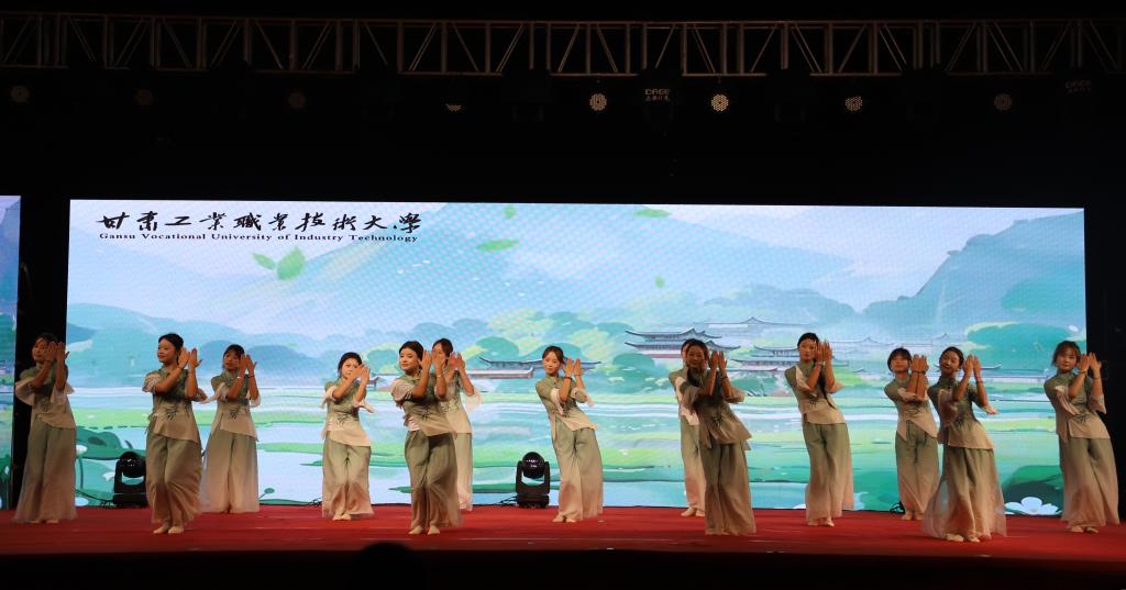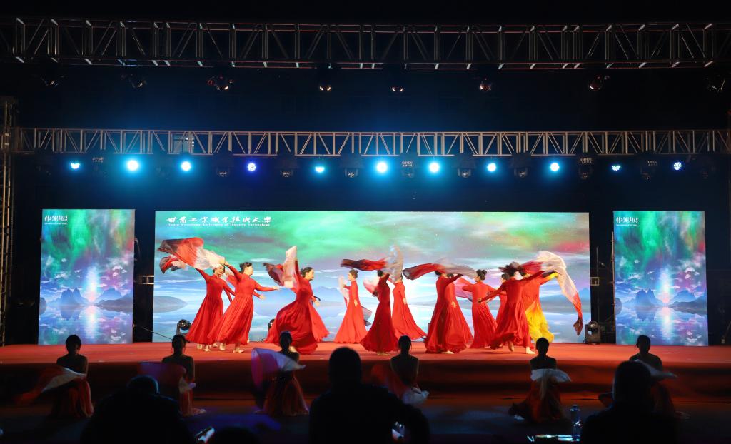 晚会特别设置了“金秋初见・筑梦工大”“红旗漫卷・情系家国”“月满情长・共话团圆”“匠心逐光・共赴新程”四个主题篇章,层层递进,寓意深远。现代舞《一起向未来》活力开场,瞬间点燃全场热情;《光亮》《长安三万里》《那一年中国青年正18》《青春坐标系》等节目通过灵动演绎,展现工科学子的朝气与赤诚;《东方红》《英雄赞歌》《党旗飘扬的方向》《不忘初心》以深情表达传递“不忘初心、牢记使命”的责任担当;《白马》《弥渡山歌》《丝路幻影》《青花瓷》巧妙融入传统元素,展现文化传承与创新活力;《起舞迎新程》《无限宣言》《中华武魂》彰显“以技能逐梦、以匠心筑梦”的坚定信念。兄弟院校甘肃林业职业技术大学友情出演的《胡杨赞》,以深情演绎赞美坚韧不拔的精神。最终,晚会在《新时代之歌》的深情旋律中圆满落幕,在场师生纷纷起身鼓掌,为这场精彩演出喝彩。