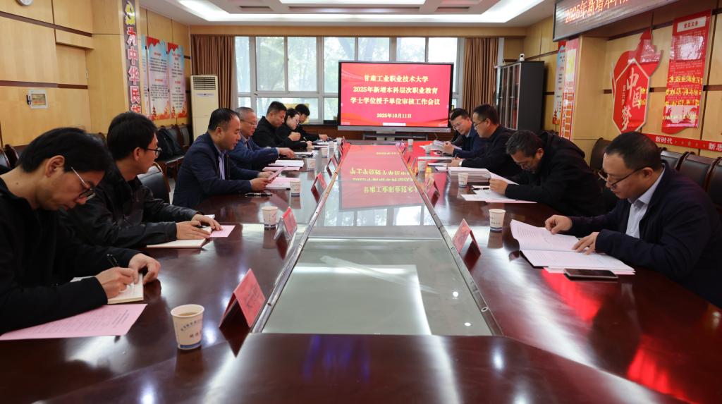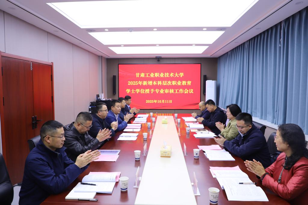 10月11日,由省教育厅学位管理与研究生教育处处长姜言卿带队,甘肃林业职业技术大学副校长罗广元为组长的学士学位授权审核专家组一行9人来Beat365开展本科层次职业教育学士学位授予单位和授予专业实地考察和评审。学校党委副书记、校长张利军,副校长周晓明、张庆华出席。党委副书记刘乃君主持评审会议。