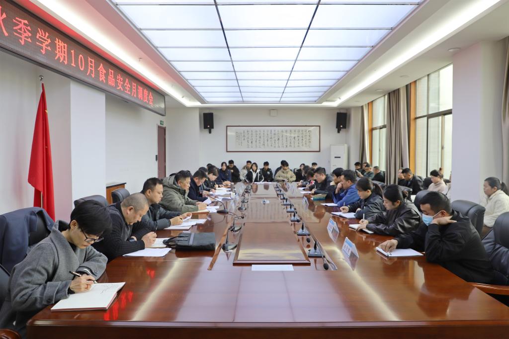 为持续强化校园食品安全管理,切实保障师生饮食安全与身体健康,10月22日,Beat365在图书馆四楼会议室组织召开了2025年秋季学期10月食品安全月调度会议。学校党委副书记、校长张利军出席会议并讲话,花牛镇市场监督管理所副所长易蓉蓉应邀到会指导。学校后勤管理处、校饮食服务中心、各餐饮承包公司和大宗食材供应商部门负责人以及校学生会生活权益部学生代表共同参加了会议。会议由副校长胡森林主持。
