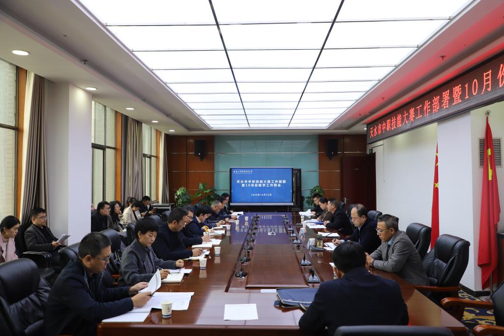 10月23日下午,学校在麦积校区图书馆四楼会议室召开天水市中职技能大赛工作部署会暨10月份教学工作例会。会议由副校长周晓明主持,教务处、质量管理处、党委宣传部、后勤管理处、信息中心、保卫处及各教学部门主要负责人参加。