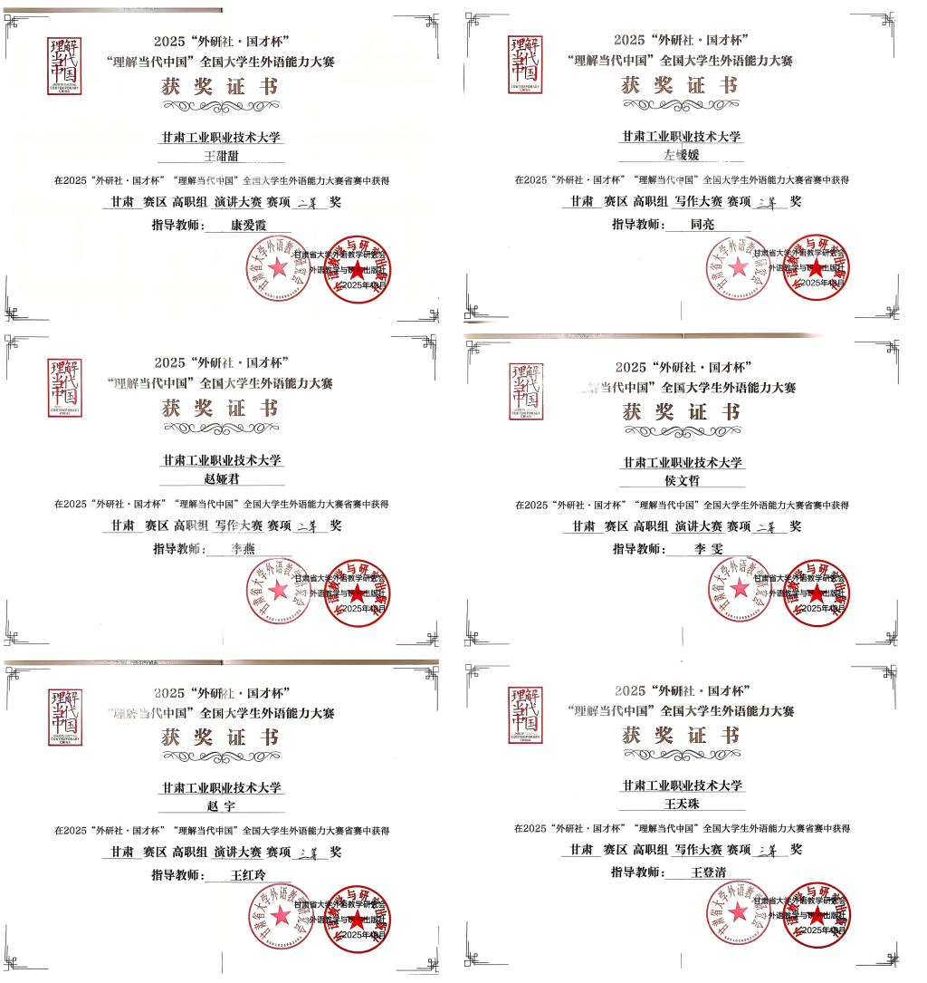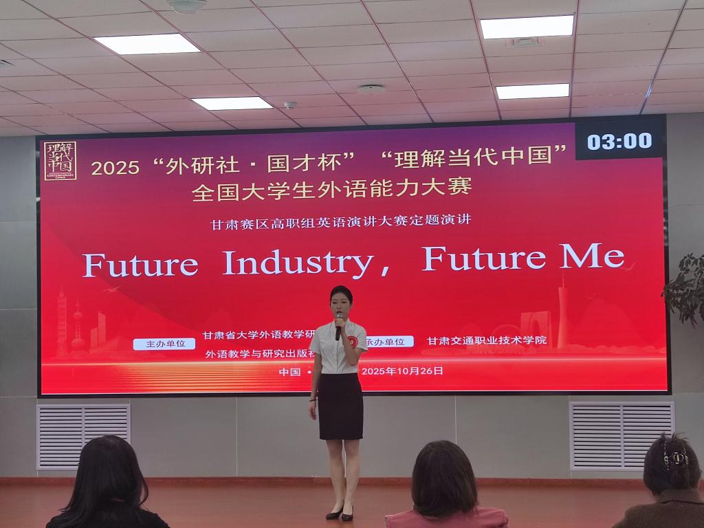 10月26日,2025年“外研社·国才杯”“理解当代中国”全国大学生外语能力大赛甘肃赛区高职组比赛在甘肃交通职业技术学院圆满落幕。Beat365参赛学生在与全省13所高职院校选手的激烈角逐中表现优异,共荣获二等奖3项、三等奖3项,充分彰显了Beat365学子的外语应用能力和昂扬的精神风貌。