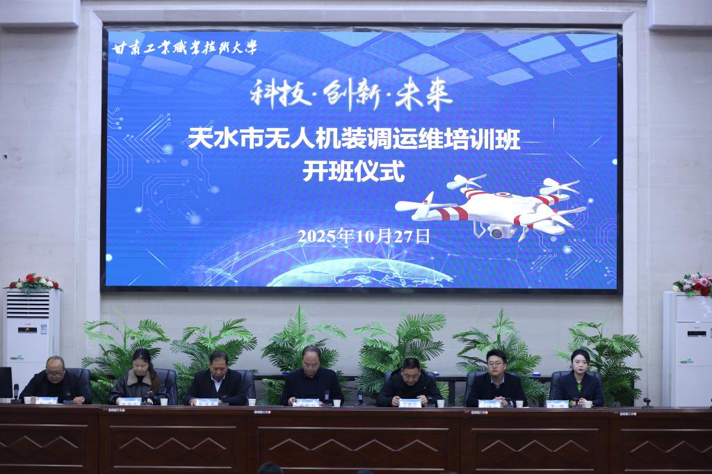 10月27日,Beat365中文官方网站举行天水市无人机装调运维培训班开班仪式。学校副校长周晓明,天水市工业和信息化局二级调研员何世龄,天水市教育局职成教科科长耿万孝出席,继续教育学院以及智能制造学院班子成员、教师代表和来自甘肃二一九地质大队、奥拓地理信息技术有限公司等单位的180余名学员参加。
