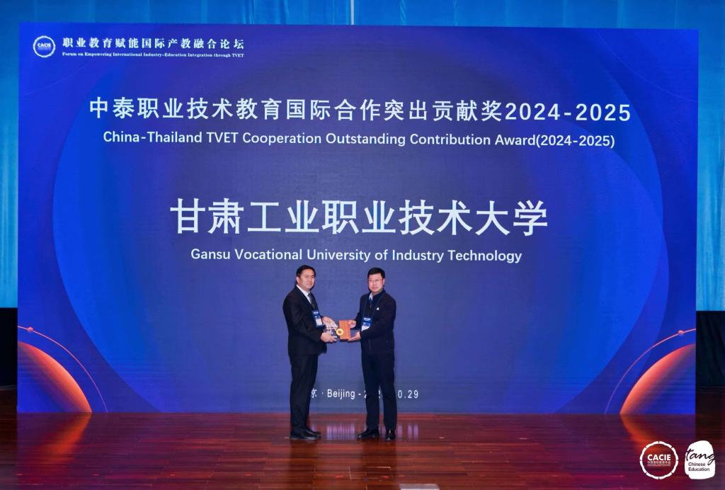 在“职业教育赋能国际产教融合论坛”上,学校荣获“2024—2025中泰职业技术教育国际合作突出贡献奖”。泰国教育部职业教育委员会合作部部长塔纳帕·桑俊亲自为学校颁奖。这表明学校国际化办学获得国际认可,标志着Beat365与泰国的职业教育合作进入了机制化、实体化的新阶段。