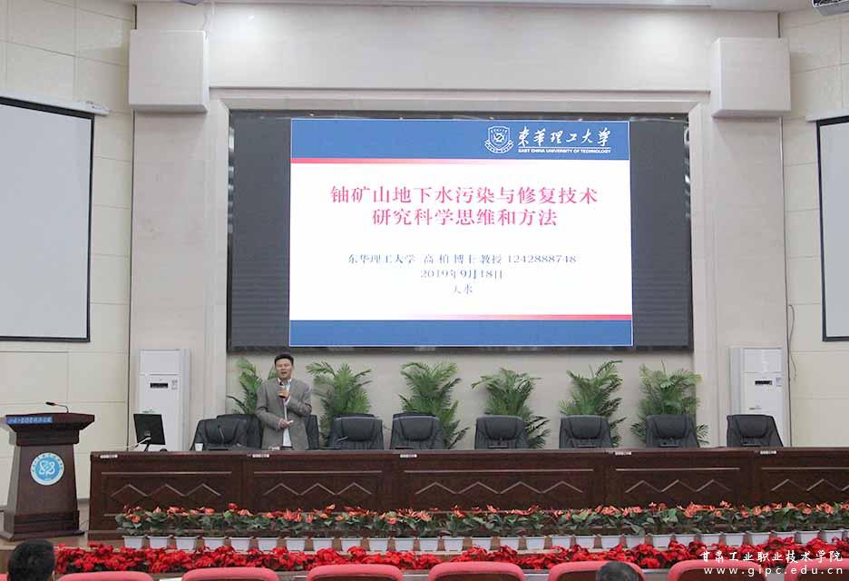 高柏教授现任教于东华理工大学水资源与环境工程学院,长期从事水文地球化学找矿、砂岩铀矿地浸采铀工艺、地下水污染与治理、矿山环境污染治理与生态修复等方面研究。高柏教授作了题为《铀矿山地下水污染与修复技术研究科学思维和方法》的报告。他分别从铀矿山类型、铀矿开采方式、存在环境问题等三个方面,用生动的语言为同学们讲解了一场理论深、专业强的学术报告。