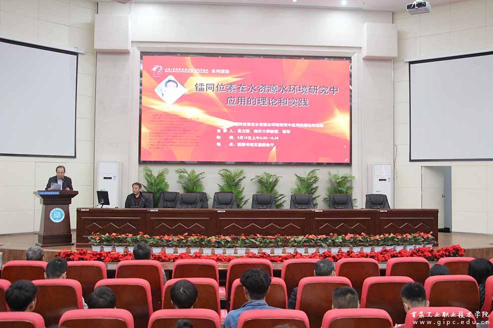 报告会首先由南开大学教授、博士生导师易立新作题为《镭同位素在水资源水环境研究中应用的理论和实践》的主题报告。易立新教授现任教于南开大学环境科学与工程学院。多年从事地下水资源评价、地下水—土壤污染组分迁移数值模拟、地面沉降致灾机理与控制、地震地下流体及水库诱发地震机理与危险性评价等方面的研究。他用深厚的学术理论功底、扎实的专业知识和丰富的实践经验,为同学们带来了一场精彩的学术报告,带动了同学们学习专业知识的积极性和教师钻研学科前沿的主动性,得到了一致好评,取得了较好的效果。