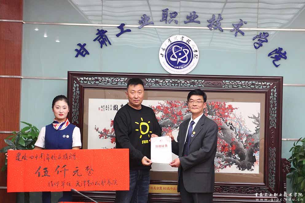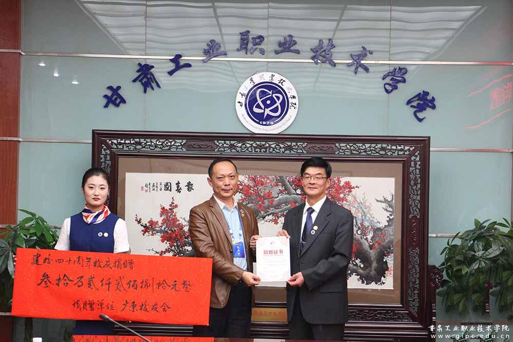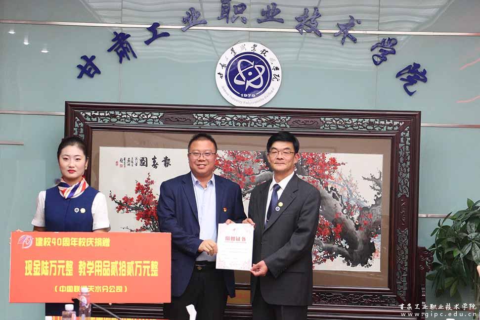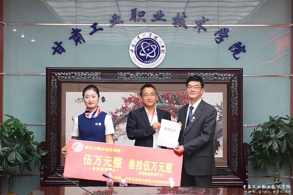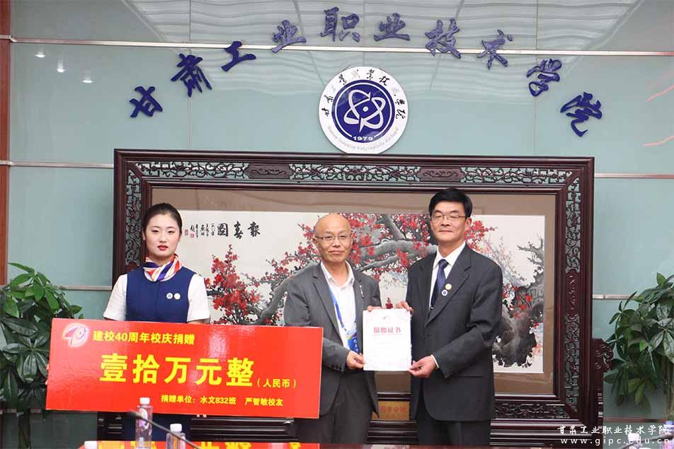 来自内蒙古维邦日新电子科技有限公司、江苏宇邦工业自动化系统有限公司、甘肃第七建设集团有限公司、甘肃日新电子科技有限公司、北京凯蓝盛世品牌管理有限公司、甘肃东煜集团、天水六九一三电子科技有限公司、甘肃丰收农业科技有限公司、新疆天业(集团)有限公司、甘肃秦洁环境科技有限公司、核工业地质局二八一大队、核工业地质局二八二大队、核工业地质局二八三大队、四川省核工业地质局、成都片区校友会、江西省核工业地质局二六三大队校友会、中国移动天水分公司、中国联通天水分公司、天津劲松护养院、北京校友会、广东校友会等多家企业和优秀校友严智敏向学校捐赠。