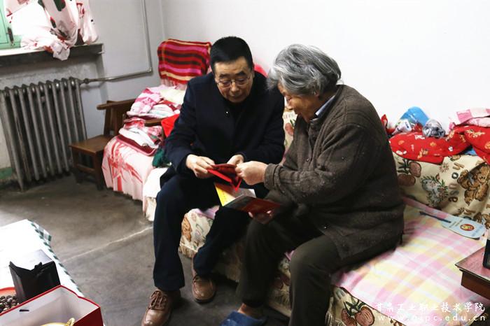 校领导们走进家门,为离退休老干部、老党员及家庭经济困难职工带去了学校党委及全校教职工的关怀与慰问。每到一处,他们都亲切地询问同志们的身体健康及生活情况,并代表学校向为学校发展建设做出贡献的老同志表示感谢,为同志们送上了新年祝福。
