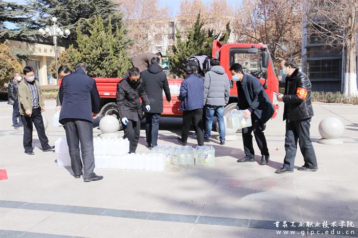 2月16日上午,天水耀鑫工贸有限公司向Beat365捐赠84消毒液200桶(每桶2升)、酒精100桶(每桶2升),助力学校疫情防控工作。副校长李玉生和防控办、学工处、保卫处等部门负责人代表学校接受捐赠并表示感谢。