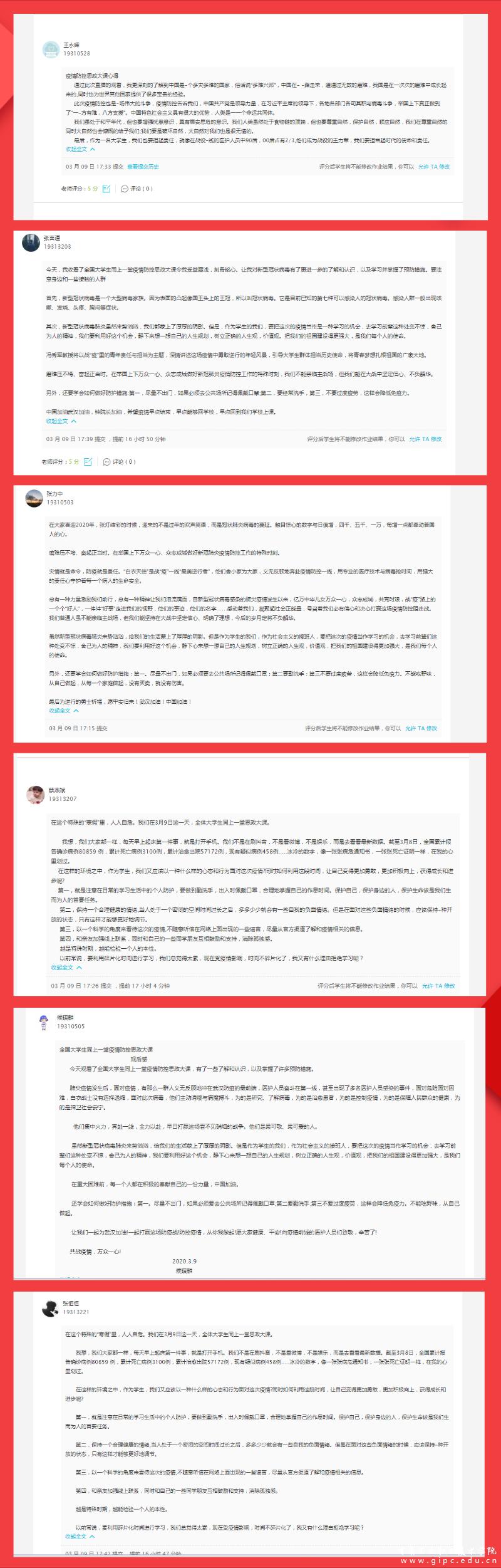 收看后,全校师生反响热烈。学校党委书记杨声说:疫情是一场灾难,但也恰是一个信念教育、情感教育、责任教育的关键时刻,教育部举办的“全国大学生同上一堂疫情防控思政大课”提供了最佳的学习机会,全校师生要牢记初心使命,以本次“疫情防控思政大课”教育为契机,坚持立德树人,铸就教育之魂。