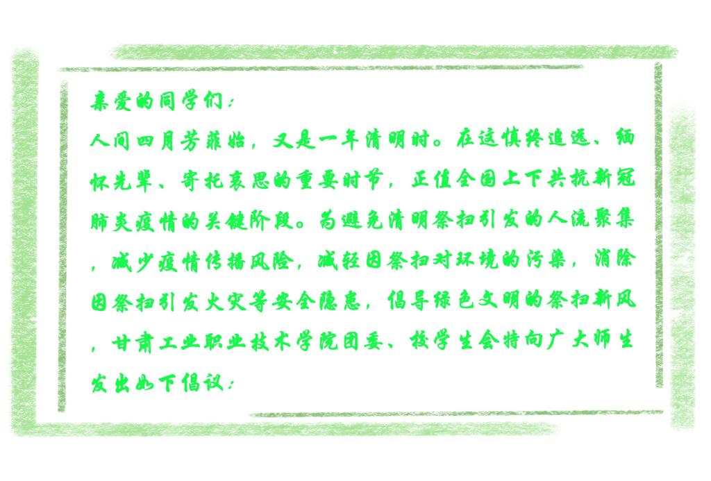 甘肃工职学院开展“缅怀革命先烈、倡导文明新风”倡议及云祭奠先烈活动