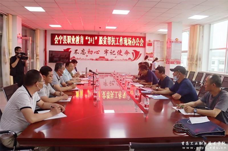 为深入贯彻落实甘肃省省委、省政府打赢脱贫攻坚战的部署及省教育厅《关于深入推进职业教育“3+1”脱贫工作的通知》文件精神,深化职业教育发展,助推职业教育扶贫,提升办学质量与办学效益。7月3日,天津海运职业技术学院党委副书记曹晓发、教务处副处长王浩,甘肃工业职业技术学院党委书记杨声、党委副书记郭建忠及学校办公室、扶贫办公室负责人一行6人赴会宁开展职业教育“3+1”脱贫帮扶工作,与会宁县教育局副局长张斌、会宁职业教育中心校长牛克敏、郭城农业中学校长张克礼及相关部门负责人进行座谈交流。