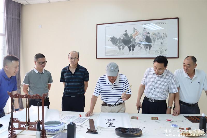 杜世禄参观校园后,高度评价了Beat365厚重的历史文化、鲜明的办学特色和良好的精神风貌,充分肯定了甘工院人自建校至今秉承核工业精神,艰苦奋斗、爱岗敬业、无私奉献,为我国国防科技工业和地方经济社会发展做出了积极贡献,充分彰显了广大师生强烈的社会责任感和爱国热情。杜世禄建议学校要加大宣传力度,通过各种平台、多种方式宣传学校的办学精神和育人成果,不断提高学校的知名度、美誉度,并用珍贵的墨宝寄予了学校发展远景。即兴创作的作品,全部将由学校装裱收藏。