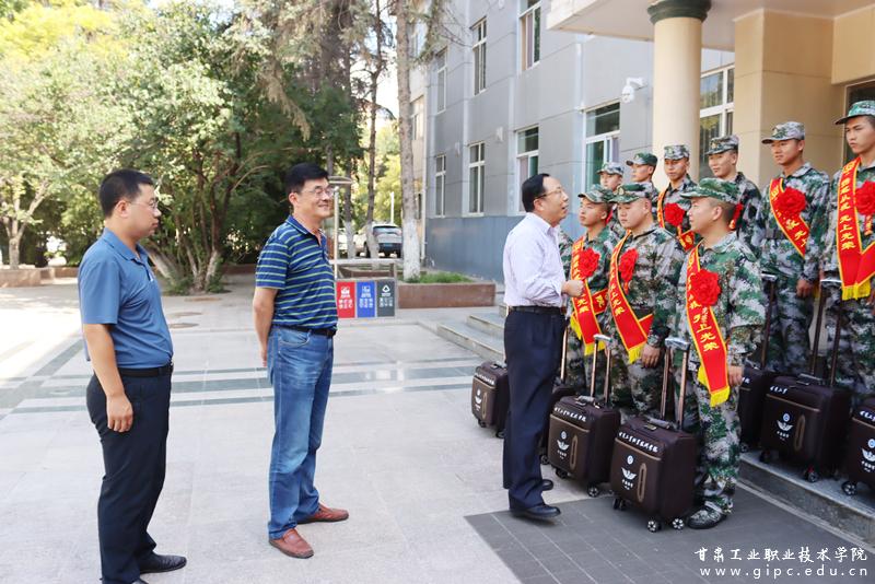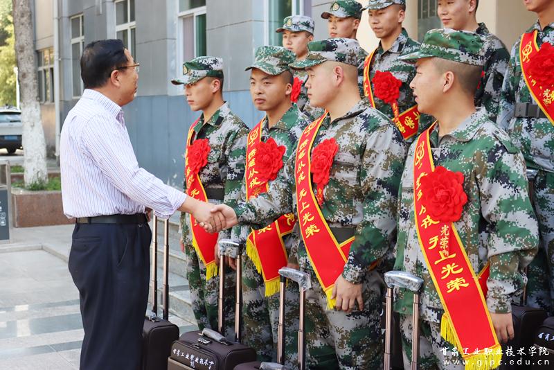 携笔从戎彰显青春本色,建功军营实现强国梦想。9月4日下午,学校举办应征青年入伍欢送会,24名应征入伍青年学生身穿军装,佩戴红花绶带,带着学校的祝福踏上军旅征程。校党委书记杨声、副书记郭建忠及武装部有关同志出席欢送会并与入伍学生合影留念。