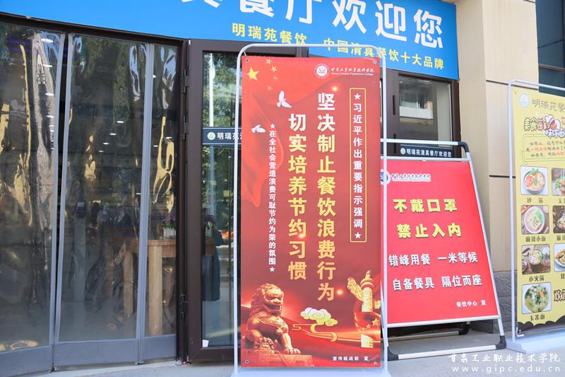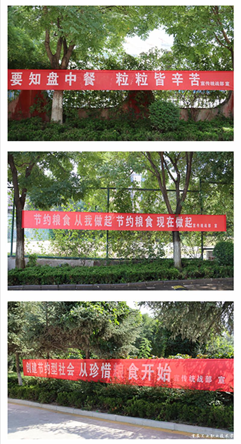 (食堂内外展板、横幅,时刻督促师生拒绝“舌尖上的浪费”)