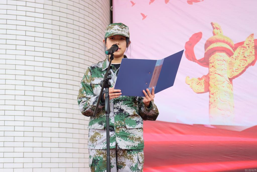 杨声同志宣布2020级军训团正式成立,并向参训部队授旗。参训教官代表和学生代表分别做了发言。