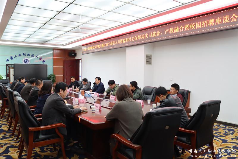 周必正同志通从地理位置、环境、获得荣誉和当地的产业结构等方面介绍了宁海县的基本情况,并就当地政府的人才引进机制作了详细的说明。宁海县人力社保局专业技术人员管理科科长骆昌杰就宁海县产教融合的具体做法作了汇报和阐述。