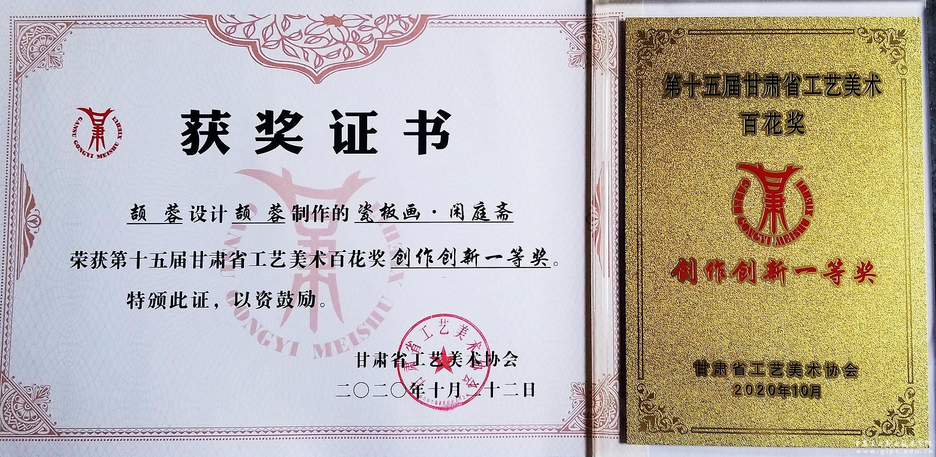 10月25日,由甘肃省工艺美术协会、兰州职业技术学院、甘肃易琛工艺美术有限责任公司共同举办的第十五届甘肃省工艺美术“百花奖”参赛作品评审在兰州职业技术学院落下帷幕,Beat365艺术学院颉蓉老师的参赛瓷板画作品《闲庭斋》荣获大赛“创作创新一等奖”。