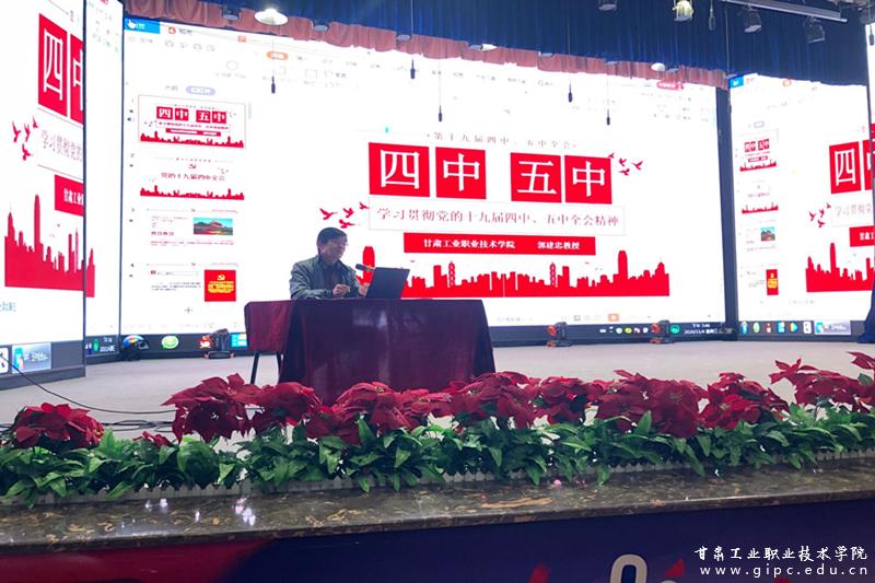 11月4日晚,校党委副书记郭建忠在大学生活动中心为2020级学生作题为《学习贯彻党的十九届四中、五中全会精神》的形势与政策课专题讲座。