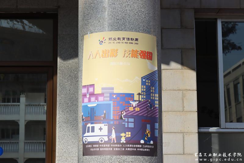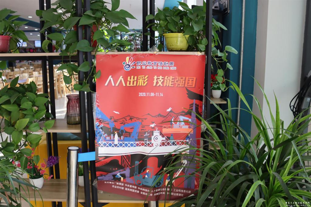 为了迎接2020年职业教育活动周,营造浓厚的“人人出彩 技能强国”活动主题氛围,提高社会各界对职业教育的认可度,展示学校学生积极向上、奋发进取的精神风采。活动周期间,学校在校图书馆、大学生活动中心及2号教学楼东西两侧电子屏滚动播放职教标语共17条。利用校园宣传栏阵地、实验实训室等场所张贴职业教育相关海报、标识60余份,形成人人知晓、人人参与的浓厚氛围。