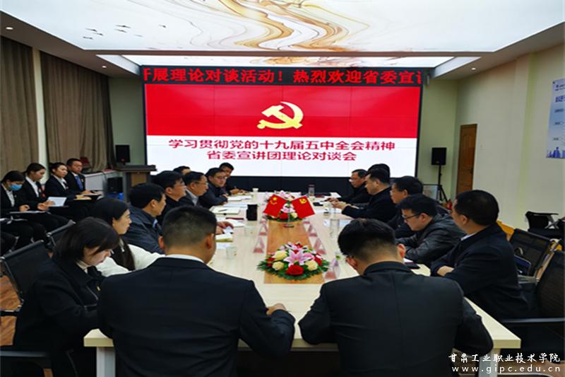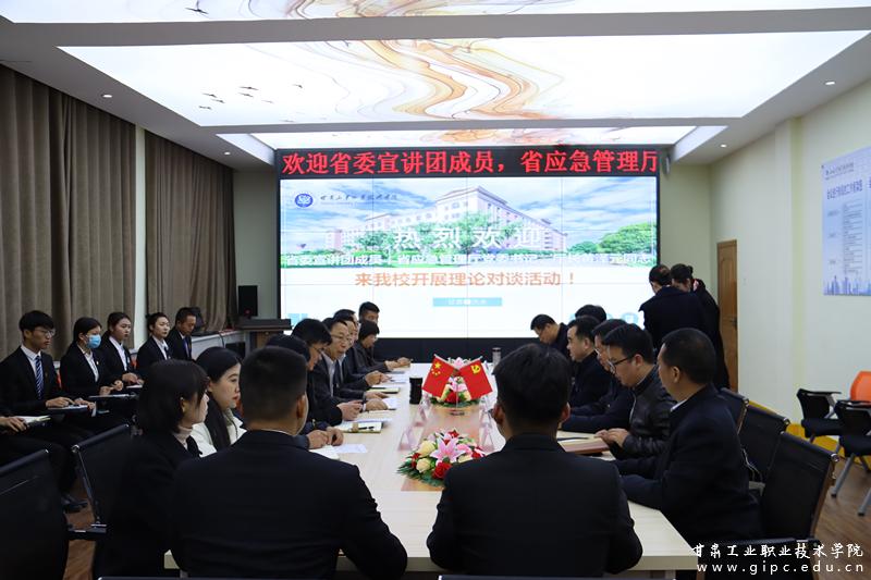 11月25日,学习贯彻党的十九届五中全会精神省委宣讲团理论对谈会在Beat365举行。省委宣讲团成员、省应急管理厅党委书记、厅长黄泽元一行7人出席会议,会议由校党委书记杨声主持,党委班子其他成员郭建忠、潘文生、杨建国出席,宣传统战部、马克思主义学院、校团委负责人及师生代表参加会议。