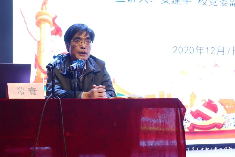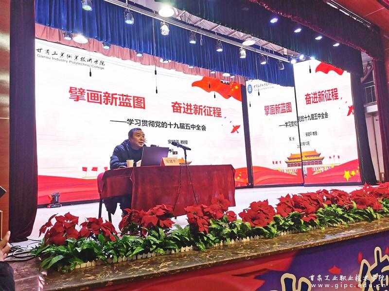 安建平教授要求广大师生要把学习宣传贯彻党的十九届五中全会精神作为当前的重要政治任务,深刻领会精神实质,切实把思想和行动统一到党中央重大决策部署上来,做到入脑入心、走深走实,把智慧和力量凝聚到落实全会确定的各项任务上来。进入新发展阶段,必须在社会主义现代化建设实践中找准职业院校人才培养定位,充分发挥优势,积极主动作为,将党中央确定的目标任务与办学治校、教书育才有机结合起来,要扛起进入新发展阶段的历史使命和时代重任,落实立德树人根本任务,在实施创新驱动发展战略中发挥作用,在加快建设幸福美好新甘肃中展现新作为,在社会主义现代化建设新征程中奋力谱写好人生华章。
