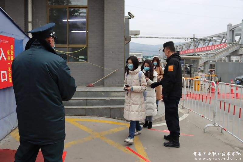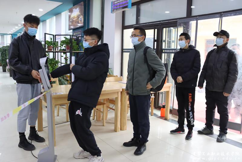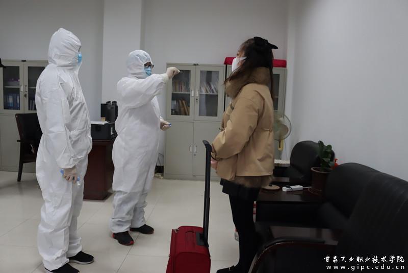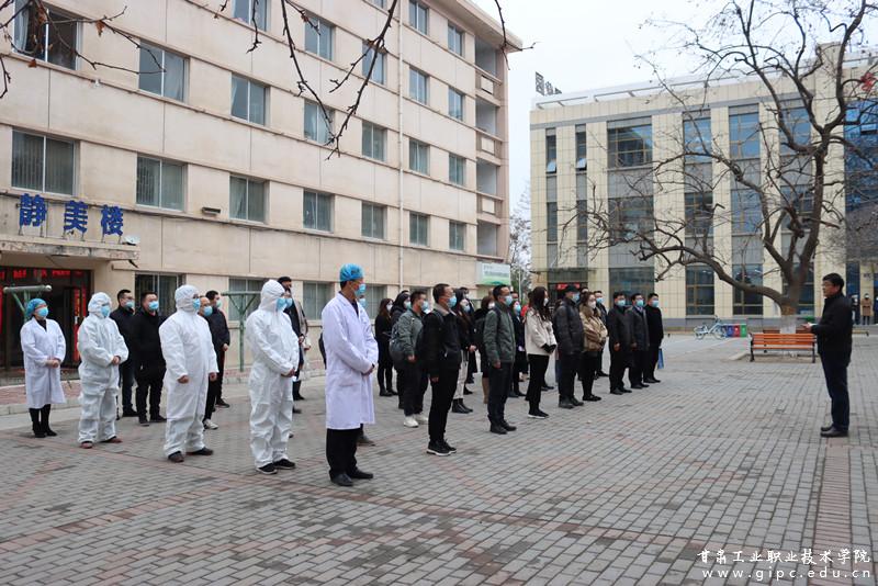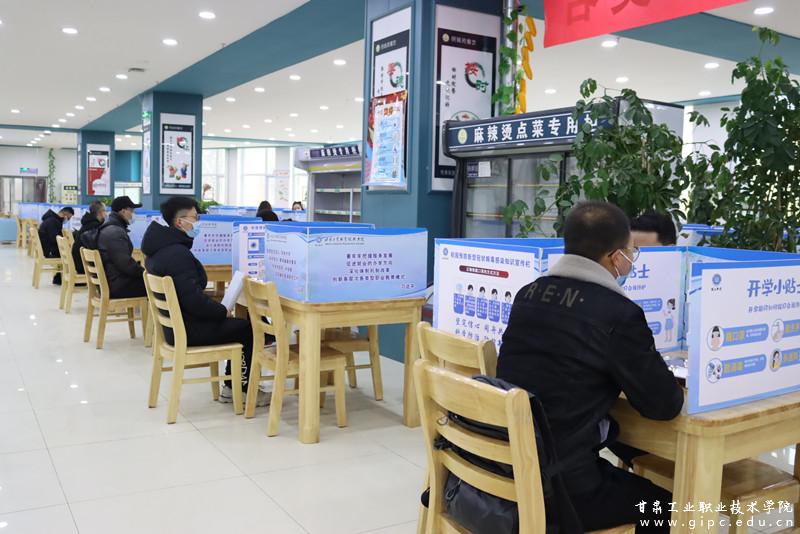 根据《甘肃工业职业技术学院2021年春季学期开学疫情防控应急演练方案》,各部门相关工作人员严格按照规定流程,分工明确、反应迅速、协调有序。主要在学校门口、隔离室、宿舍、食堂等重点区域和重点场所进行了演练,完整模拟了学生返校报到、食堂就餐、日常检测、清洁消杀以及学生体温异常情况应急处置流程,并针对现场演练中存在的问题及时进行讨论和完善。