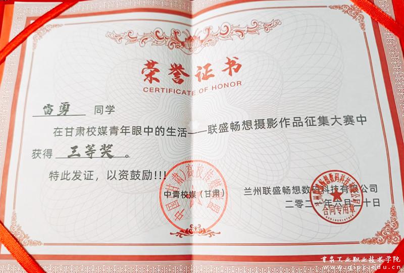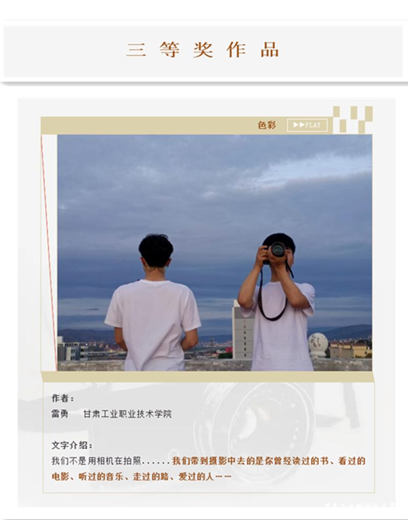 6月20日,由甘肃省中青校媒主办、兰州联盛畅想影像俱乐部承办的2021年“青年眼中的生活”摄影作品大赛圆满收官,Beat365新媒体工作室参赛作品“色彩”荣获三等奖。