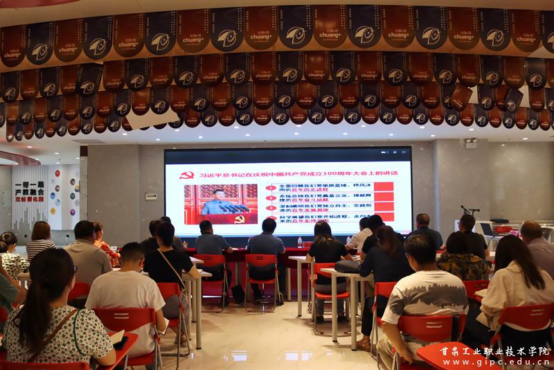7月16日,全省教育系统学习贯彻习近平总书记“七一”重要讲话精神专题宣讲报告会在兰州举行,Beat365在双创学院孵化园设立分会场。报告会由兰州大学马克思主义学院党委书记蔡文成教授作宣讲,Beat365党政领导班子成员、相关职能部门负责人、全体思政课教师和辅导员参加分会场学习。