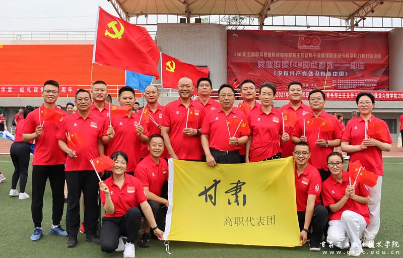 23日,培训班庆祝建党100周年快闪活动在甘肃工业职业技术学院田径场举办。来自27个省、直辖市的培训班成员与嘉宾身穿红色服装,手持红旗,齐唱《唱支山歌给党听》、齐跳《没有共产党就没有新中国》,用歌声和舞蹈来讴歌中国共产党成立100周年来取得的辉煌成就。