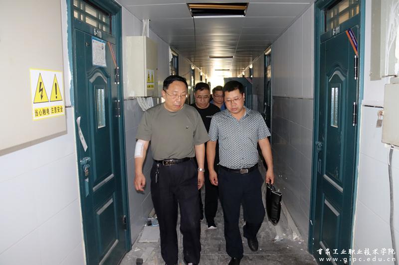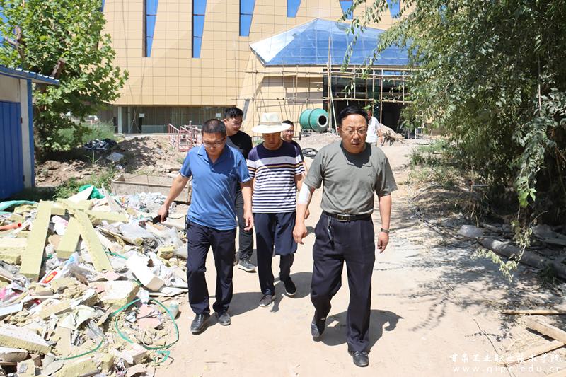 8月9日上午,校党委书记杨声带队督查项目建设工程进度。副院长胡森林、副院长曹惠清及规划基建处、国资后勤处等部门负责人陪同检查。