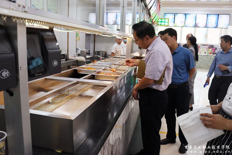 在东、西两座餐厅,校领导一行边走边看。每到一间食堂,从大厅环境、就餐秩序、窗口卫生、餐品质量、价格品种等方面,到菜品采购过程、进货销售等每个坏节,都进行仔细的检查和询间。并认真地向学校教师、就餐学生了解对学校伙食供应质量、价格服务等方面的意见。