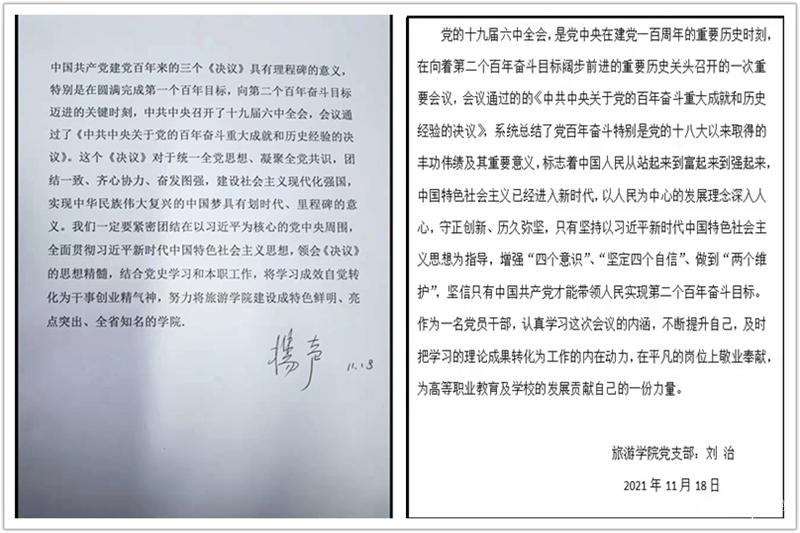 旅游学院党支部开展“学习党的十九届六中全会精神”主题党日活动