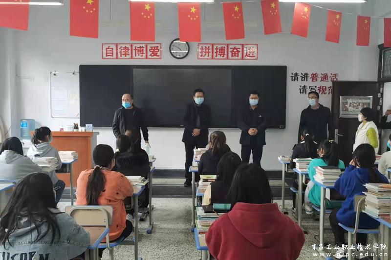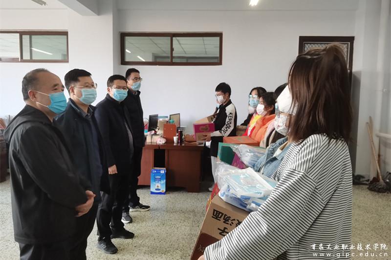 走访中,校领导代表学校为同学们送上慰问品,希望同学们在校期间安心学习和健康生活,学好、学深专业知识,毕业后找到满意的工作,以优异的成绩回报父母、以扎实的专业技能回馈社会。