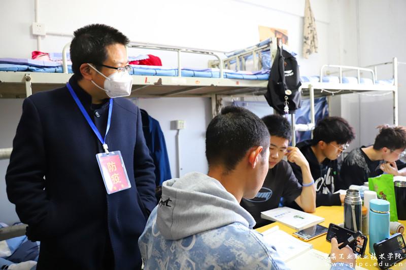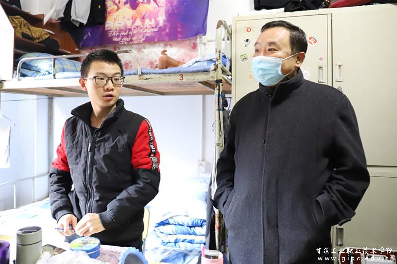 11月10日上午,院长安建平、副院长王利军在教务处等部门人员陪同下,深入学生公寓检查线上教学运行情况。