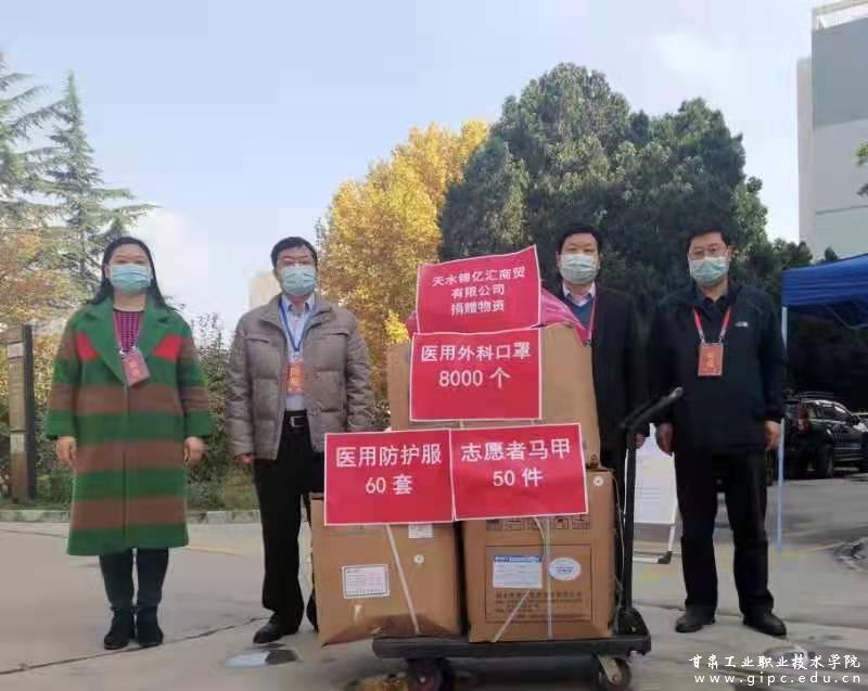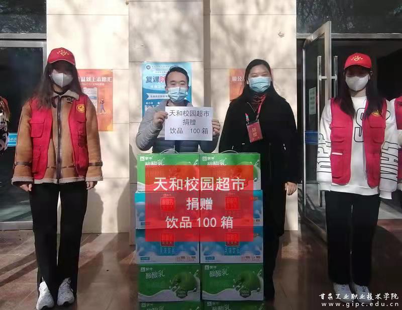 收到兰州大学深圳校友会、兰州大学天水同仁文化旅游促进会、天水66号文化创意园捐赠爱心物资口罩10万只;爱心企业天水锦亿汇商贸有限公司捐赠物资医用防护服60套、医用外科口罩8000个、志愿者马甲50件;甘肃国傲工程建设股份有限公司天水分公司经理、Beat365杰出校友孙军强向校友会捐赠N95口罩1万只,人民币2万元;天合校园超市向团委志愿者捐赠饮品100箱。