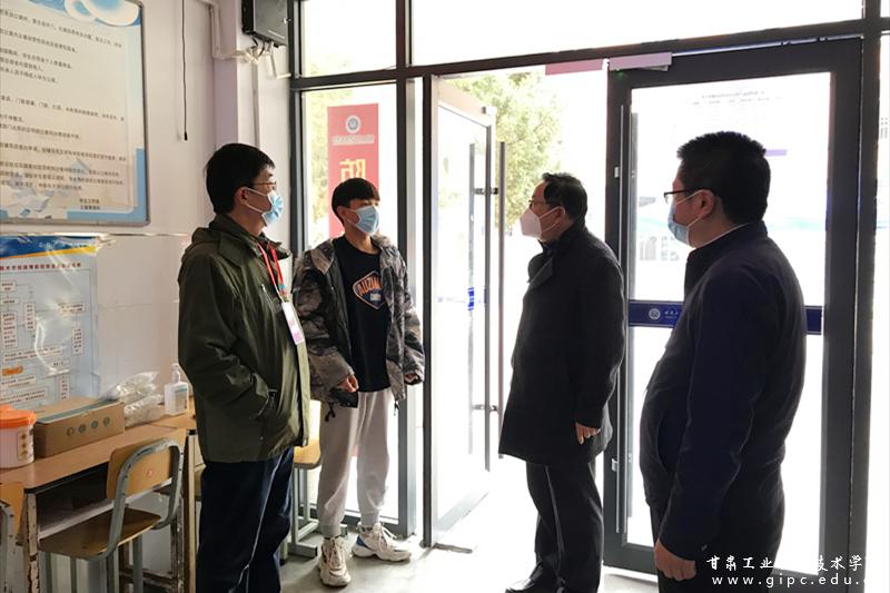 11月2日上午,校党委书记杨声,党委副书记郭建忠、副院长王利军在教务处、学工处等部门人员陪同下,深入学生公寓及时了解疫情防控专题思政课程学习情况,全面贯彻落实疫情防控有关要求,坚决筑牢全员防疫坚实屏障。
