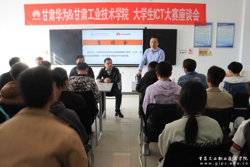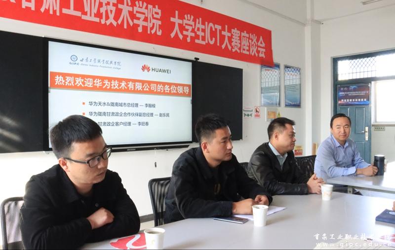 赛后,华为天水办事处工作人员与部分参赛学生、备考华为高级网络工程师和华为认证互联网专家的学生进行了座谈,就HCIP的认证与就业、华为“HCIE万人计划”、“一试双证”政策等相关事宜进行交流。座谈会现场气氛活跃,学生热情高涨。华为天水城市总经理李翰模、副总经理赵乐民、客户经理李旺春现场认真解答学生疑问,并鼓励同学们努力提升专业技能,表示欢迎大家到华为天水办事处实习或就业。