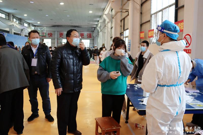 核酸采集过程中,校党委书记杨声,党委副书记、院长安建平来到采样现场,实地查看了采样点区域划分、检测工作流程、后勤服务保障、现场秩序维护、防控措施落实等情况,详细询问了核酸检测进展情况、预计采样数量及计划完成时间等。他们向工作在一线的医护人员、防控办工作人员和物业安保人员等表示感谢,并强调,当前处于疫情防控工作的非常时期,各部门和二级学院要充分认识到核酸检测的重要性和必要性,坚持思想不松懈,认真把控每个环节,确保按照预计时限要求,高效、高质量完成核酸检测采样工作。