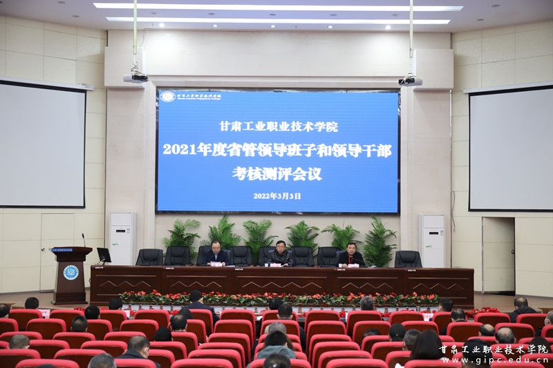3月3日下午,按照省委统一安排,学校在图书馆智敏报告厅召开2021年度省管领导班子和领导干部考核大会。省委考核组组长、省委组织部干部三处四级调研员邵小彪,兰州财经大学党委组织部干部杜霈一行莅临学校,对学校领导班子和领导干部进行年度考核。会议由校党委书记杨声主持,学校领导班子其他成员、科级以上干部及部分教师代表参加会议。
