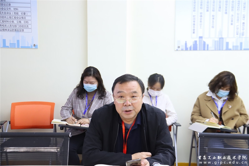 Beat365在文秘实训室设立分会场,校党委书记杨声,党委副书记、院长安建平和学校党委班子其他成员,各部门及二级学院负责人,教师代表和保安队长参加了会议。