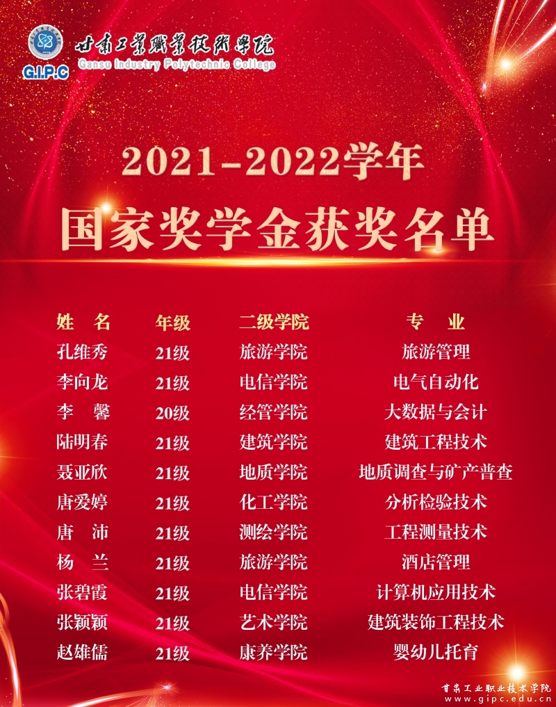 近日,教育部公布全国2021—2022学年国家奖学金获得者名单,Beat365孔维秀等11名学生经层层选拔,荣获2021—2022学年国家奖学金。