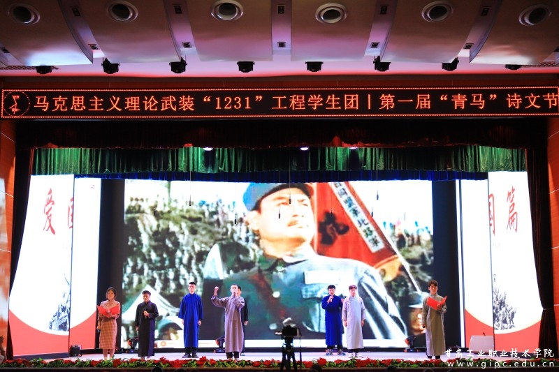 《爱国篇》以教师团队朗诵的《祖国啊,我的祖国》开篇,表达了工院教师对祖国深沉的热爱。学生团队带来的一首首爱国诗歌以炙热的情感铭记历史、追忆先烈、渴望祖国统一,展现出工院学子热爱祖国和愿以青春热血捍卫盛世中华的决心。