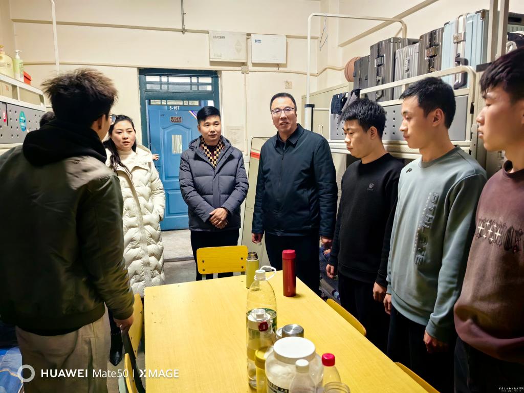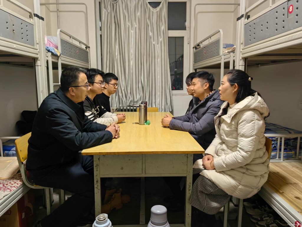 为深入了解学生宿舍生活状况,拉近师生距离,12月9日晚,化工学院党总支书记岳强带领学管负责老师和辅导员深入学生宿舍走访看望学生,了解和解决学生的“急难愁盼”问题,同时传递学院的关怀与温暖。