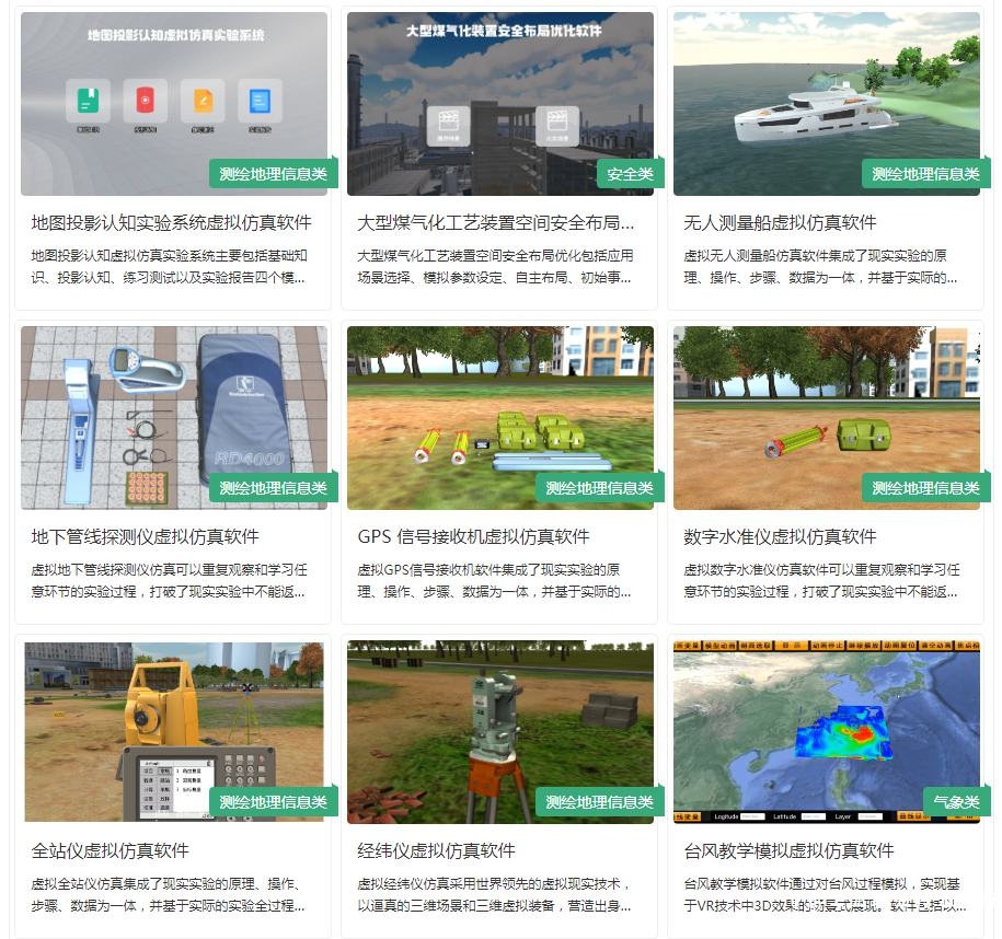 公共虚拟仿真实训基地主要由硬件设备和软件系统组成。硬件设备如虚拟现实头盔、手柄和传感器等,为用户带来身临其境的体验;软件系统则涵盖了模拟场景、虚拟角色以及教学资源等多个方面,为实训提供丰富的内容和功能。目前,已建成55门课程虚拟仿真实训项目,6门3D VR资源,涵盖了资源环境与安全大类、装备制造大类、电子与信息大类等7个专业大类虚拟仿真项目资源。