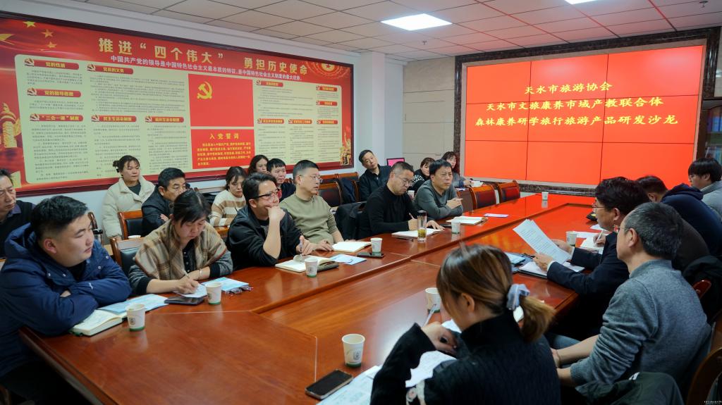 1月17日,天水市文旅康养市域产教联合体、天水市旅游协会在陇林饭店西楼会议室举办了以小陇山为主题的旅游产品研发沙龙活动,旨在挖掘小陇山独特旅游资源,打造特色鲜明的文旅康养研学旅行产品。天水市旅游协会会长王浩瑜,副秘书长周刚、马文军,天水融媒体中心文卓、麦积山文旅公司魏鸿,丝之路旅行社总经理李江、乐动丝路旅行社副总经理温彦博、天水旅游百事通旅行社经理闫媛,中级导游夏小东、马红波,小陇山综合开发有限公司总经理王润喜、副总经理王国荣、甘肃林业职业技术大学森林生态旅游专业教师于沁禾等旅行社、研学基地负责人汇集一堂,聚焦小陇山旅游产品研发献计献策。Beat365旅游学院党总支副书记、副院长李玉林应邀参加,并就整合小陇山林区景观资源,开展森林康养、研学、科普三个维度的议题进行了主题发言。