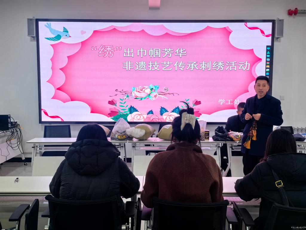 为发扬传统非遗之美,欢庆三八妇女节,3月6日下午,学工处特邀甘肃工艺美术大师、刺绣非遗传承人刘云帆老师在“一站式”学生社区开展了一场别具一格的非遗技艺传承刺绣活动,全体女辅导员老师参加。
