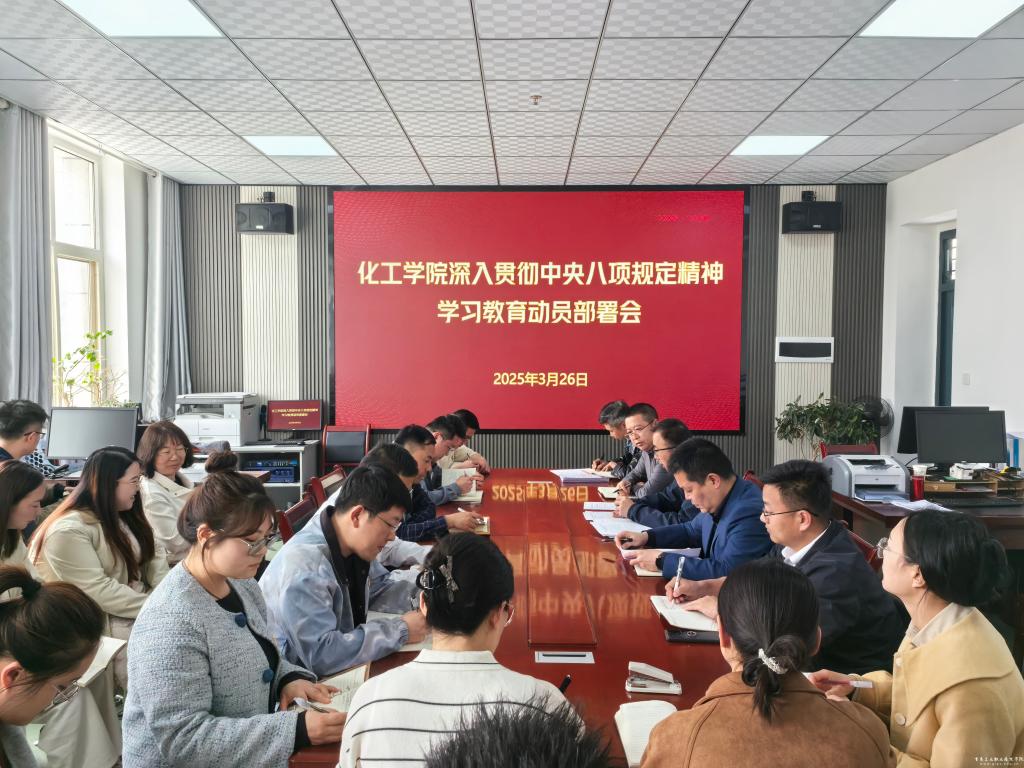 3月26日下午,化工学院召开深入贯彻中央八项规定精神学习教育动员部署会,传达学习校党委深入贯彻中央八项规定精神学习教育启动部署会议精神,对我院学习教育进行动员部署。化工学院党总支书记岳强主持会议,学院全体教职工参加。