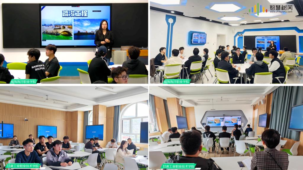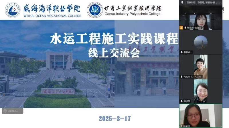 为做好此次同步课堂活动,双方围绕课程建设目标、教学内容、教学方法及教学资源利用等方面进行了详细对接。4月18日下午,两校师生相聚云端,正式开启了这场水运工程施工的探索之旅。威海海洋职业技术学院《水运工程施工》课程负责人路一老师以“水运工程施工实践”为主题,依托基于知识图谱的AI课程平台,实现了两校师生实时互动与资源共享。4月23日下午,威海海洋职业技术学院张英超老师线上同步分享了航道疏浚工程中的挖泥船施工原理及方法。