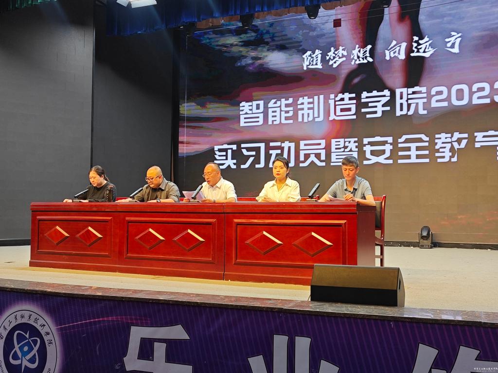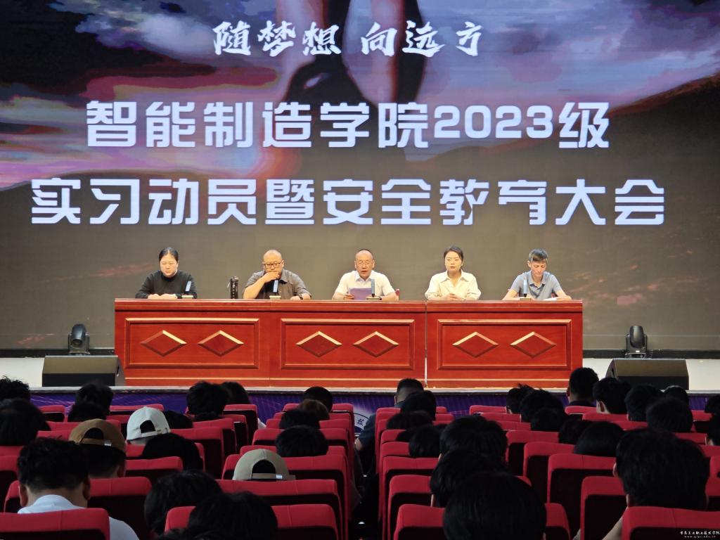 为切实做好2023级学生实习工作,强化实习安全意识,明确实习目标与要求,6月4日,智能制造学院在大学生活动中心召开2023级实习动员暨安全教育大会。学院领导班子、实习就业干事、2023 级全体学生及班主任参加会议,共话实习规划,共筑安全屏障。