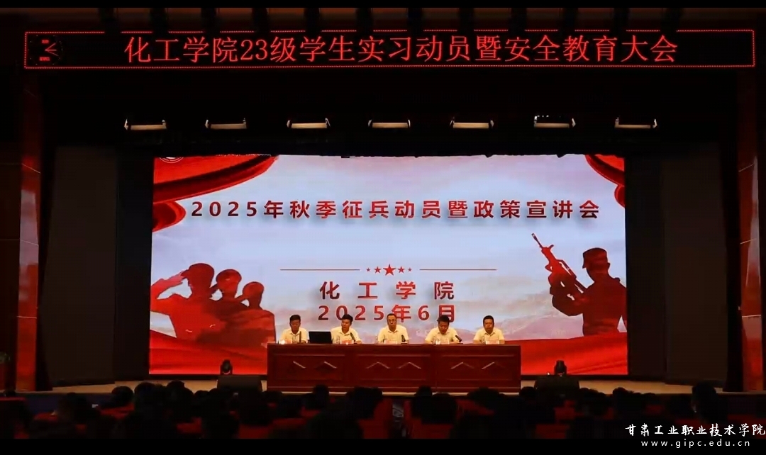 盛夏蝉鸣声声急,青春扬帆正当时。为进一步落实人才培养方案要求,提升学生实践能力和职业素养,确保2023级学生实习工作顺利进行。6月6日下午,化工学院在大学生活动中心举行2023级学生实习动员暨征兵政策宣讲大会。化工学院领导班子、2023级辅导员、班主任、实习指导教师以及2023级全体学生参加。